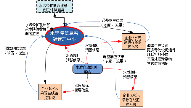 通過水環境信息智能管理中心實現污染物排放濃度、總量的自適應調整,針對總量控制目標優化排污過程,從而最大程度發揮水環境物聯網“感、傳、析、控”的一體化聯動調控能力。